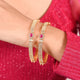 - These gold-plated bangles are full of color and bling. Crafted with high-quality CZ stones, these bangles are great for anyone looking to add some shine to their look with a hint of glamour. The gold-plated bangles bring in a subtle touch of beauty. It is a simple accessory with a timeless appeal.