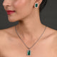 Silver Plated American Diamond CZ Green Oval Pendant Set With Earring and Chain