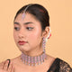 - The choker set is handcrafted by our expert artisans, studded with shining American Diamond Cubic Zirconia stones. This two layer geometric patterned choker is both classic and contemporary. An effortless way to elevate any of your ethnic outfits. Accentuate with other CZ accessories for a grand look.