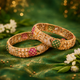 - Sparkling in hues of Kundan & CZ shine, these elegant bangles feature beautiful patterns with round stones. It is a stylish for festive look.
