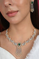 Enchanting Handmade CZ Neck...Gold Plated Green Kundan CZ Long Haar Bridal Wedding Necklace Set With Earring