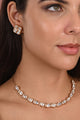 This stunning necklace from our CZ collection showcases a beautiful mix of white CZ stones in a sophisticated design. Finished with gold plated- base, it adds a polished touch to any outfit. Whether as a gift or for special occasions, this necklace blends timeless elegance with modern style.