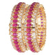 Gold Plated Red American Di...Gold Plated White Kundan Green Enamel Heavy Openable Kada Bangle Set of 2