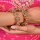 - Sparkling in hues of Kundan & CZ shine, these elegant bangles feature beautiful patterns with round stones. It is a stylish for festive look.